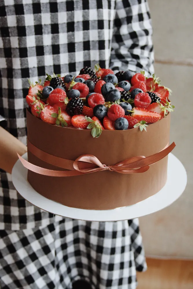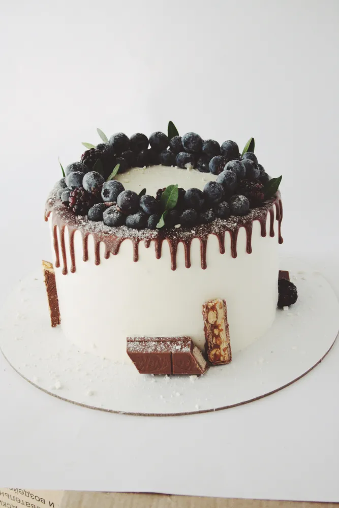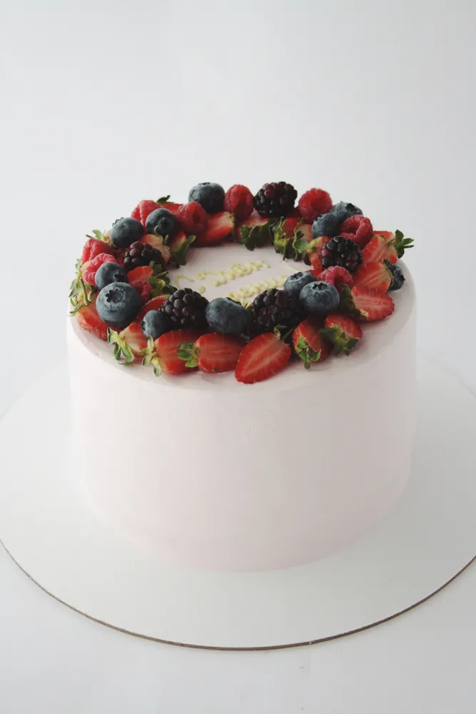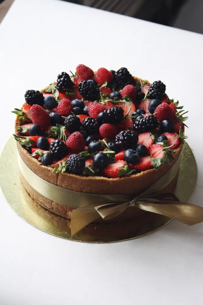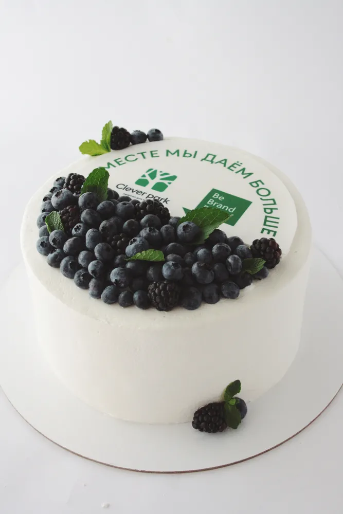 Чизкейк классический с венком из ягод и надптсью шоколадом