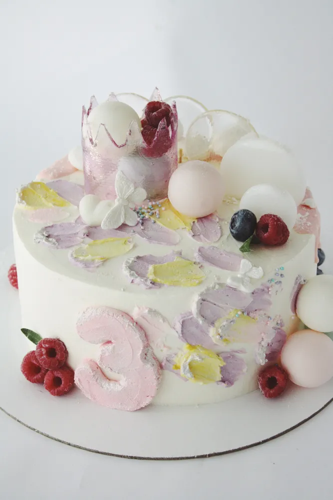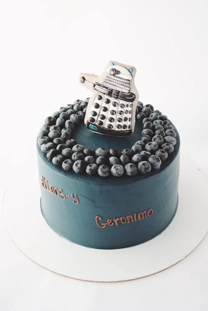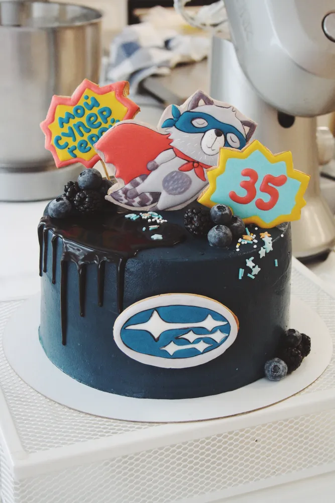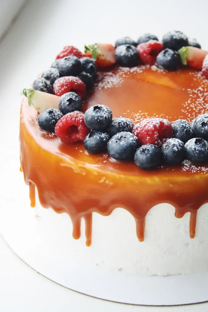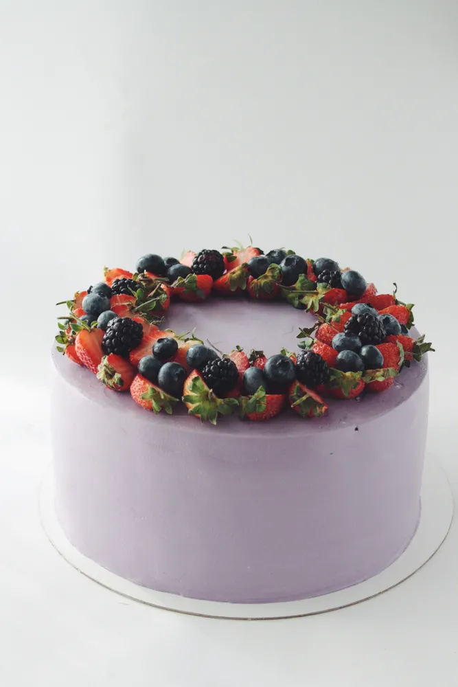 Чизкейк классический с венком из ягод и надптсью шоколадом