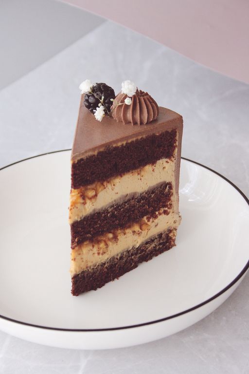 Шоколадный торт с карамелью, орешками, шоколадным ганашем и нежным сырным кремом, в меру сладкий, насыщенный по вкусу.
