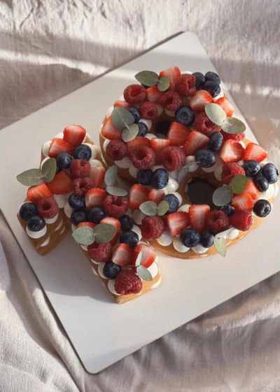 Торт медовые цифры-это медовые заварные коржи пропитанные нежным кремчизом с сердцевинкой в виде вишни.