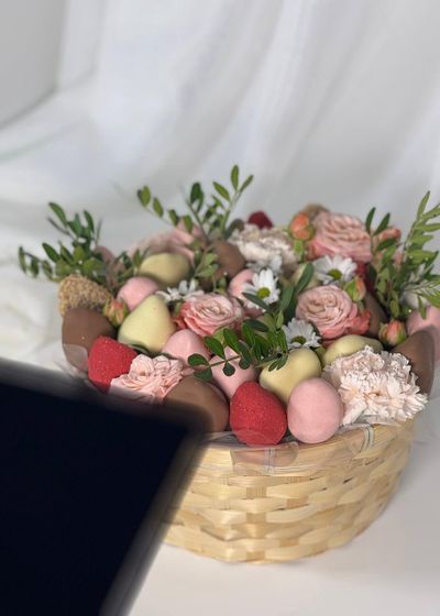 Корзина с цветами и клубникой в шоколаде 6 500 ₽ В корзину В корзину Плетеная корзина с клубникой в шоколаде и цветами в ассортименте.Количество ягод варьируется от 25 до 35 шт в зависимости от размера клубники. Плетеная корзина с клубникой в шоколаде и цветами в ассортименте.Количество ягод варьируется от 25 до 35 шт в зависимости от размера клубники.