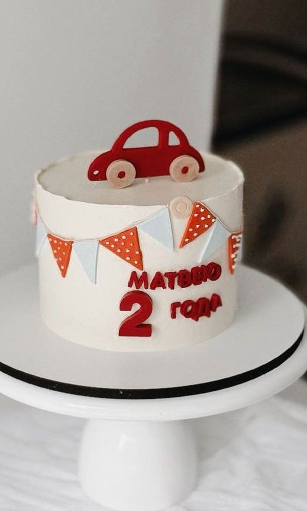 Торт оформляется шооладной машинкой, гирлянда из мастики, шоколадными буквами и цифрой.