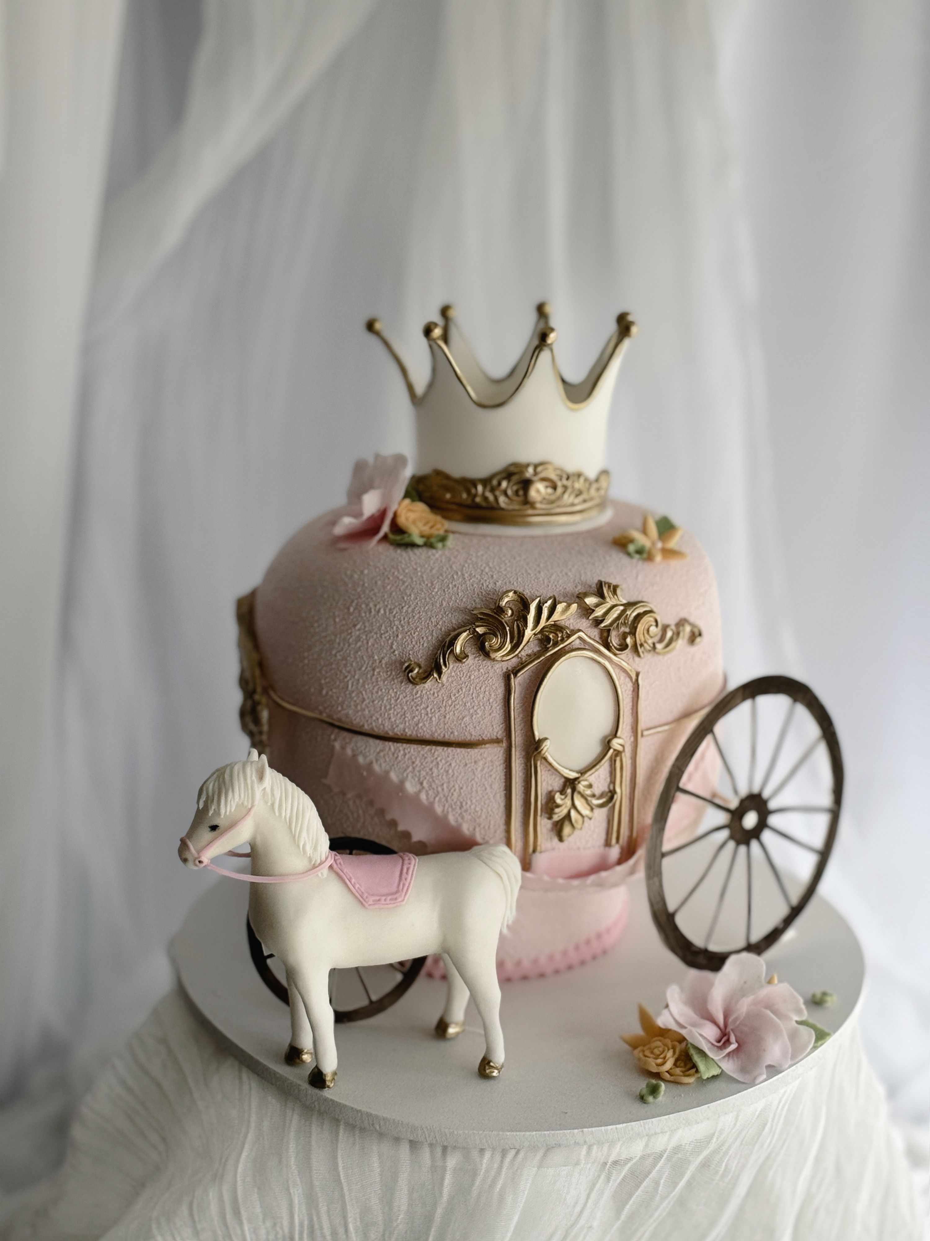 Торт оформляется матовым покрытием из велюра нежно розового цвета, дополнен мастичными и шоколадным декором