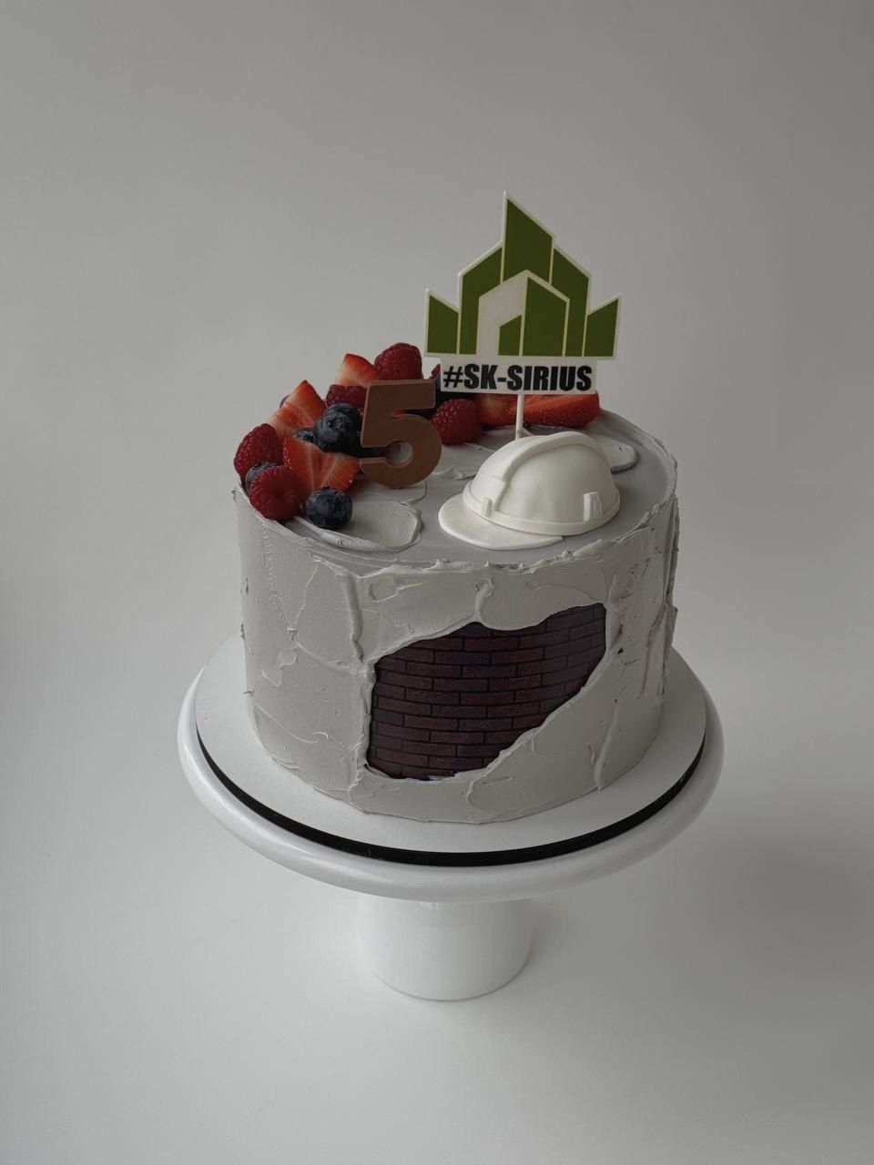 Декор торта выполнен из мастики, шоколада и фотопечати с добавлением сезонных ягод из наличия.