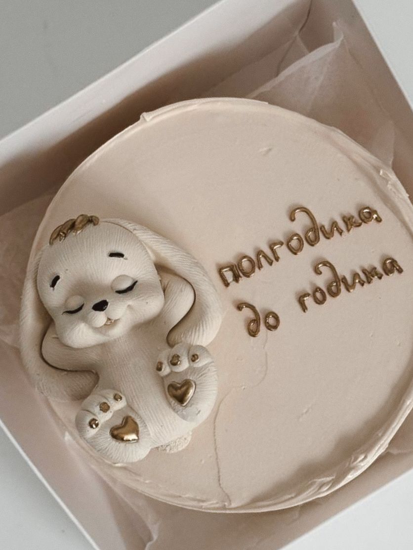 Бенто торт с шоколадной фигуркой зайчика и кремовой надписью